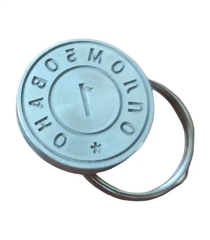 На передній стороні пломбіра наноситься гравіювання за вашим макетом, що дозволяє ідентифікувати власника чи відповідальну особу. На зворотному боці зазвичай є кільце для носіння на ключах чи зв’язці. Для опломбування використовується пластилін та опломбувальні пристрої.